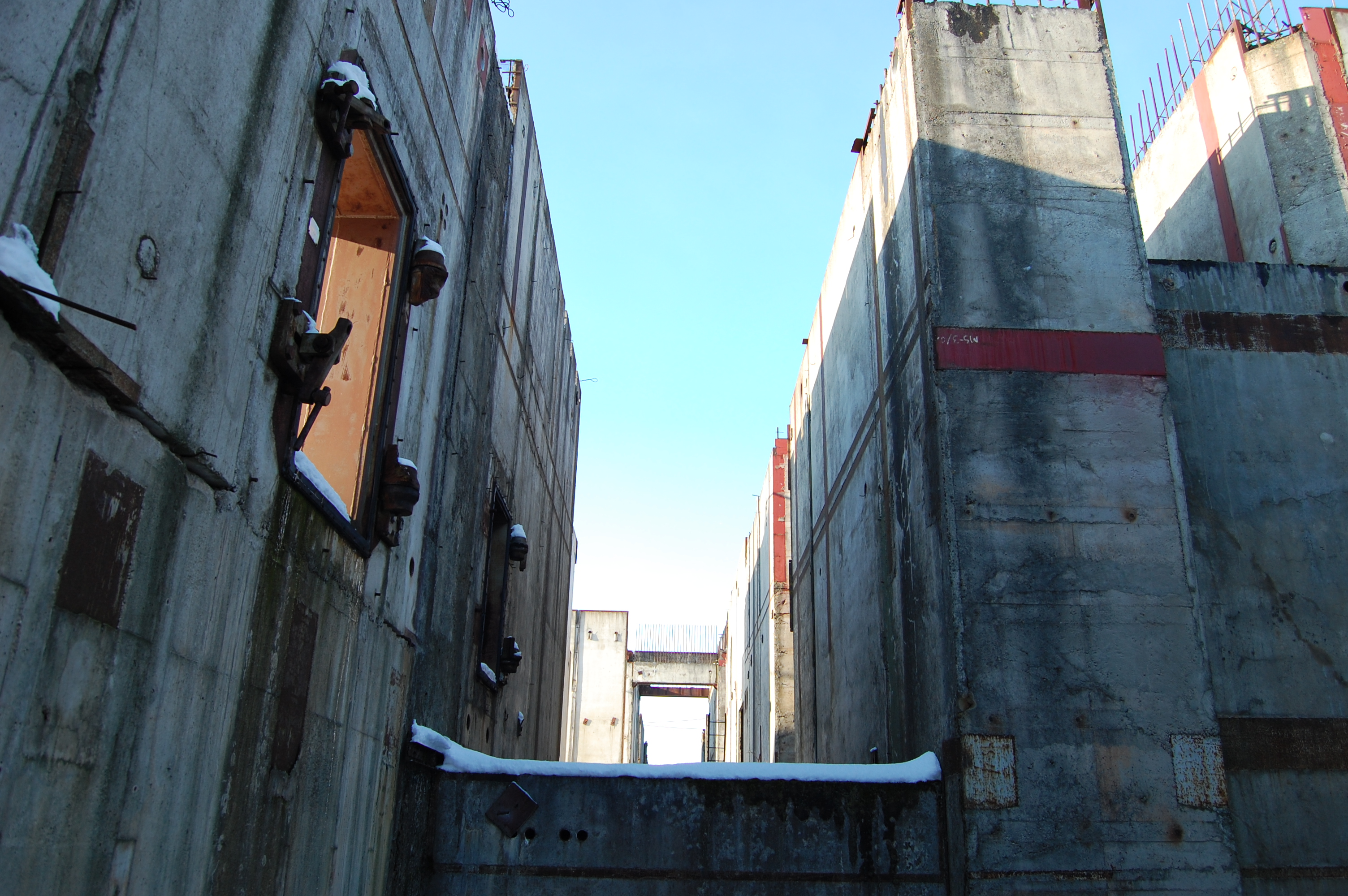 When you approach closer you are not sure where to start. There is one complex of buildings to your right and the main one in front. You can go around all of it or step in. Once you get in, the only things you see around is bare concrete structures with metal pipes and rods sticking out, connected with submarine-like metal door frames. If someone used to play some apocalyptic games he understands where the title of this post comes from. It really makes you ask a question “what if everything did look like that?”. The site, being an unfinished nuclear power station, tickles your imagination generously.